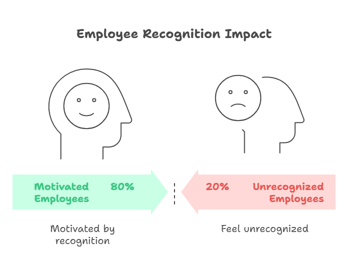 Despite 80% of employees saying recognition motivates them to work harder, only 20% feel adequately recognized at work. This disconnect costs organizations billions in lost productivity, increased turnover, and decreased morale.